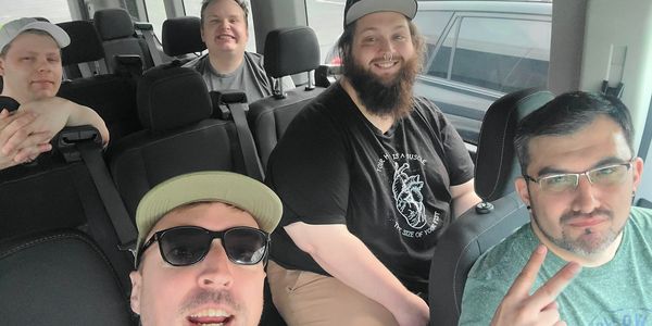 This shot was taken in the van during our drive to Long Island. Gear in the back. Most of us sleep-deprived. It was the first time in a long time we were all in the same vehicle together.
